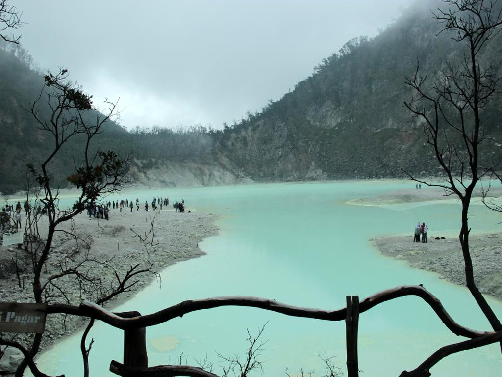 Kawah Putih is a tourist spot in West Java. Enjoy the amazing Crater Lake, there is a pathway down to the lake. Walk around the crater area or sit in the various shelters. The smell of sulfur is strong because there is a good deal of steam and sulfurous gas bubbling from the lake.