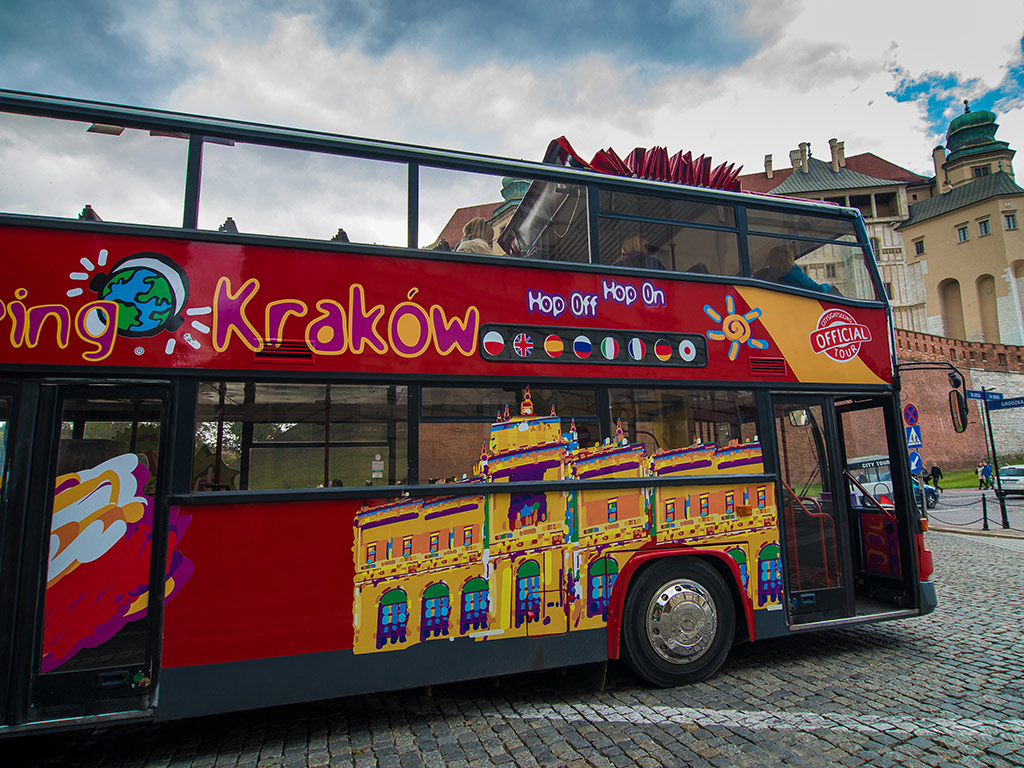 Explore the fascinating city of Krakow on an iconic City Sightseeing bus tour and discover at your own pace what makes this city one of the most charming in Europe. Unravel its secrets as you learn about its remarkable historic city with thanks to the on-board audioguide available in 9 languages Explore the fascinating city of Krakow on an iconic City Sightseeing bus tour and discover at your own pace what makes this city one of the most charming in Europe. Unravel its secrets as you learn about its remarkable historic city with thanks to the on-board audioguide available in 9 languagesHighlights- Explore Krakow at your own pace - Admire the best of the city in record time aboard an open top bus! - Learn interesting facts about the city with the on board audioguide Are you ready for the ultimate Krakow adventure? Hop on board, make your way to the upper deck of our open-top bus and get ready to see the city from a different perspective. Hop off at any one of the 8 conveniently located stops, which will save you time and allow you to see much more of this beautiful city!